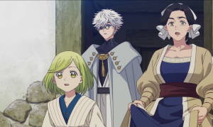 A cena em que ela traça o círculo mágico, ainda sem compreender tudo, é construída com uma tensão crescente. Quando a magia se manifesta de forma descontrolada, transformando sua mãe em pedra, o anime oferece um dos momentos mais impactantes dessa estreia. Essa mudança brusca redefine completamente o tom da narrativa.